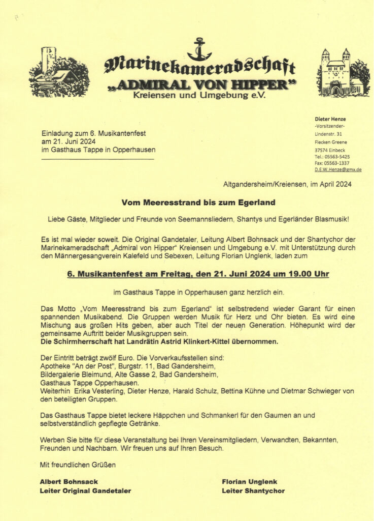 Einladung zum 6. Musikantenfest in Opperhausen